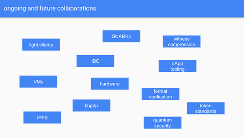 ブロックチェーン業界、特にEthereum 2.0 R&D 関連の企業のコラボレーションの状況をまとめていました。また、Ethereum 2.0が抱える課題を他のブロックチェーンの実例なども踏まえながら説明されていました。